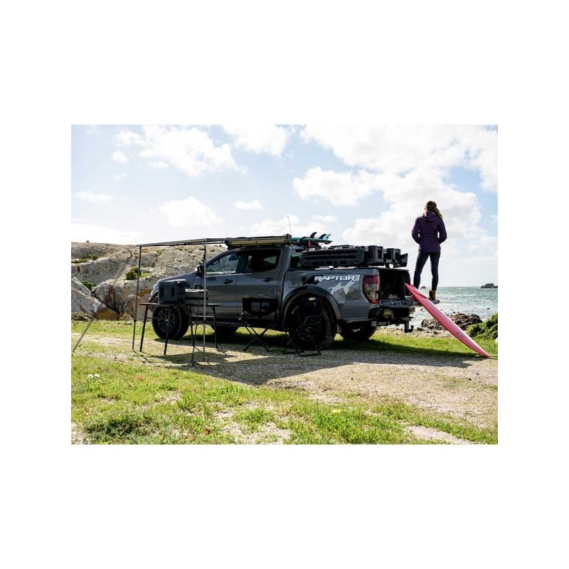 L’auvent peut être rangé dans un sac et ce sac peut être attaché au véhicule.